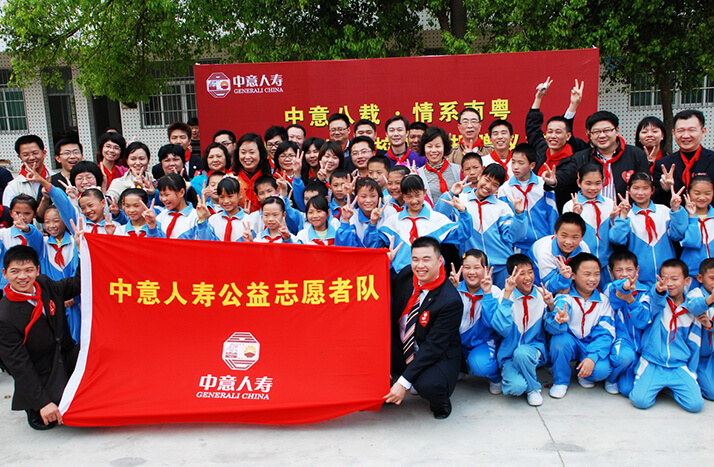 2008年"5.12大地震"發(fā)生后僅兩日,中意人壽即決定以公司名義向中國(guó)紅十字會(huì)捐款30萬(wàn)元,幫助災(zāi)區(qū)同胞度過(guò)難關(guān)。此外,中意人壽員工也積極響應(yīng),紛紛慷慨解囊,向中國(guó)紅十字會(huì)捐款21萬(wàn)余元。后中意人壽又以公司名義捐款50萬(wàn)元,通過(guò)四川省青少年發(fā)展基金會(huì)于2009年在四川省廣漢市興隆鎮(zhèn)建設(shè)"中意希望小學(xué)",幫助四川地震災(zāi)區(qū)的孩子們重返校園。