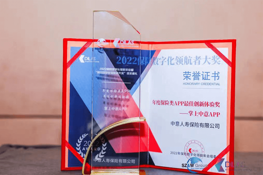 掌上中意APP榮獲2022“年度保險類APP最佳創(chuàng)新體驗獎”