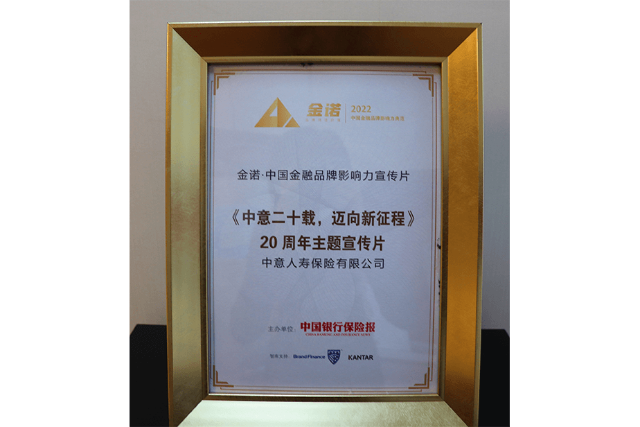 《中意二十載 邁向新征程》榮獲2022“金諾·中國金融品牌影響力宣傳片”