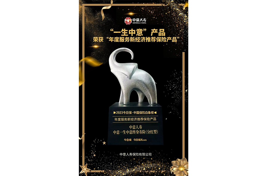 “中意一生中意終身壽險(分紅型)”榮獲“2023今日保·中國保險白象榜”“年度服務(wù)新經(jīng)濟推薦保險產(chǎn)品”獎
