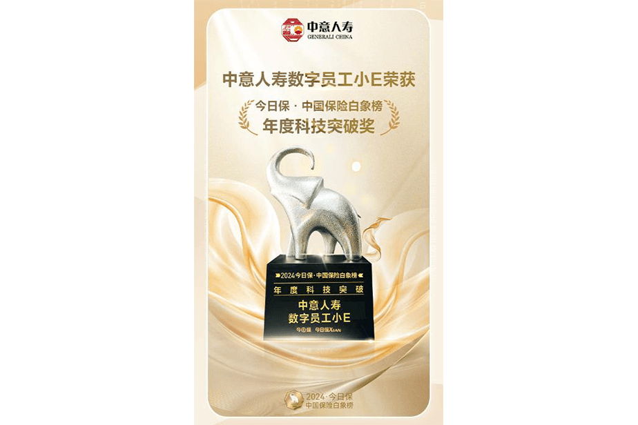 中意人壽數(shù)字員工小E榮獲今日保·中國保險白象榜年度科技突破獎