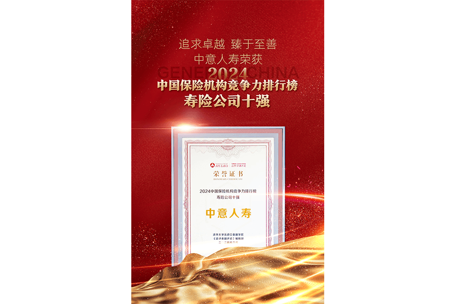 中意人壽榮獲2024中國保險機構(gòu)競爭力排行榜壽險公司十強