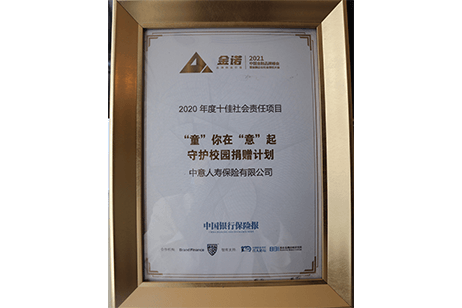 “中意人壽守護校園助力湖北復(fù)學(xué)公益計劃“榮獲社會責(zé)任年度案例獎